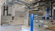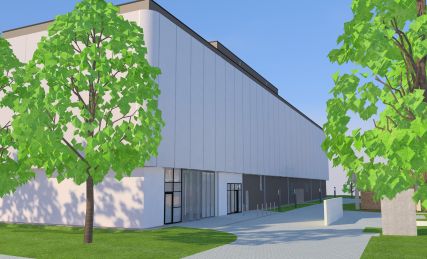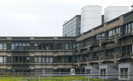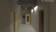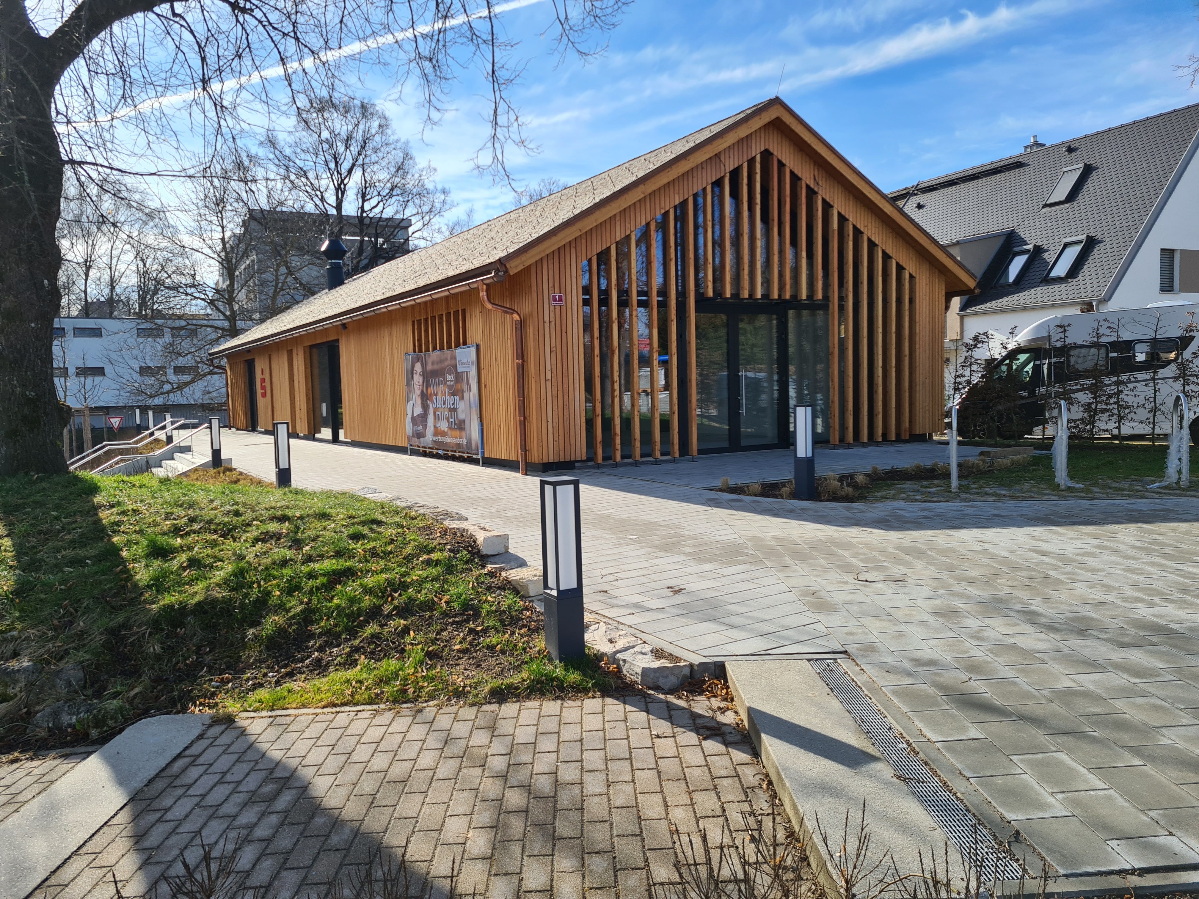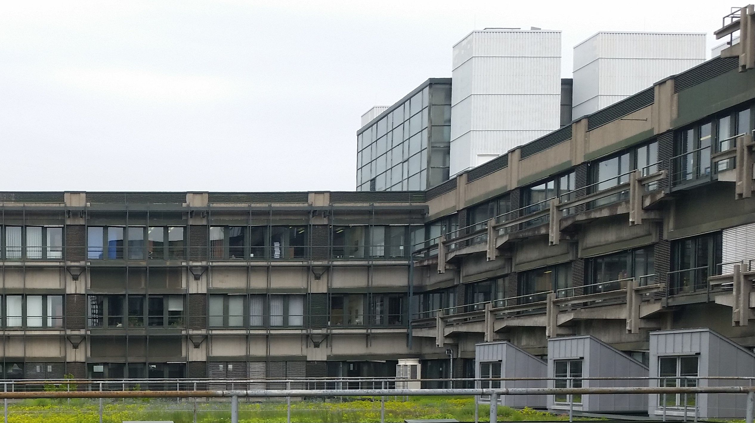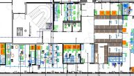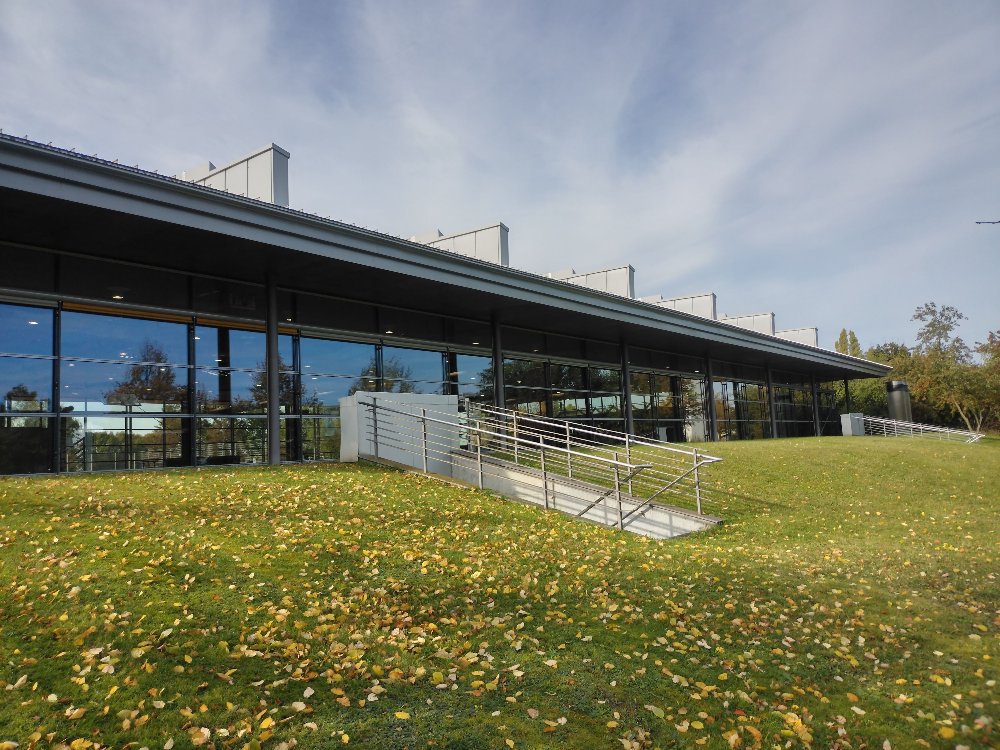 Büro- und Labornutzung aus vorgefertigten Raummodulen mit massivem Erdgeschoss und Treppenhaus