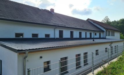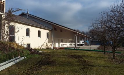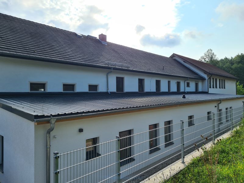 Büro- und Labornutzung aus vorgefertigten Raummodulen mit massivem Erdgeschoss und Treppenhaus